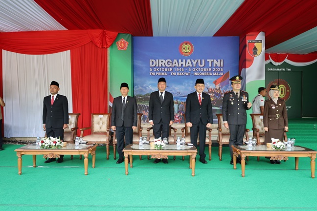 Tulungagung – Kapolres Tulungagung AKBP Muhammad Taat Resdi menghadiri upacara peringatan Hari Ulang Tahun Tentara Nasional Indonesia (TNI) ke-80 Tahun 2025 yang digelar di halaman Kantor Pemerintah Kabupaten Tulungagung, pada Minggu (05/10/2025).