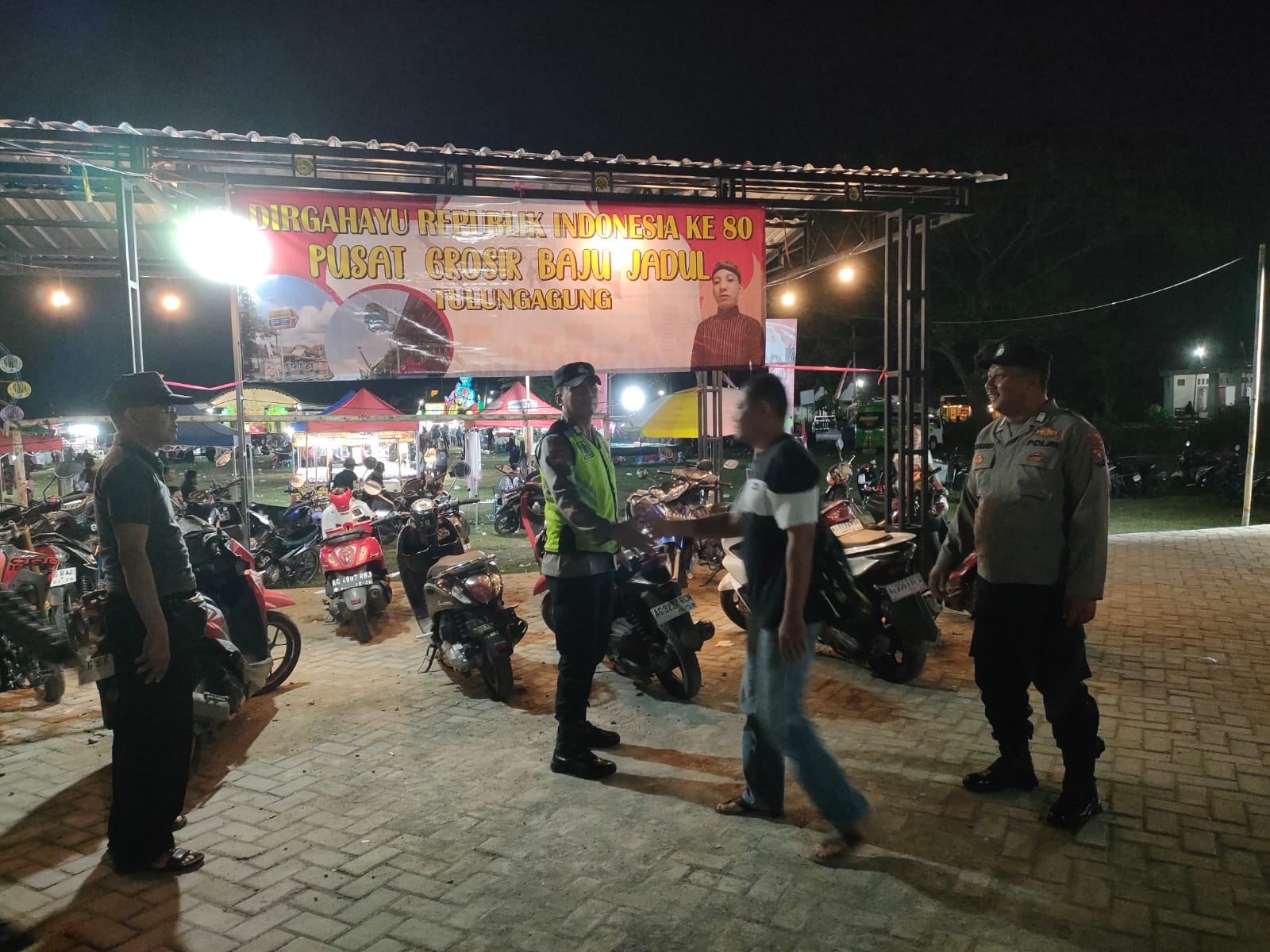 Tulungagung – Polsek Campurdarat Polres Tulungagung melaksanakan pengamanan kegiatan bazar dan pentas seni jaranan yang digelar di Lapangan Desa Pojok, Kecamatan Campurdarat, dalam rangka Peringatan Hari Besar Nasional (PHBN).