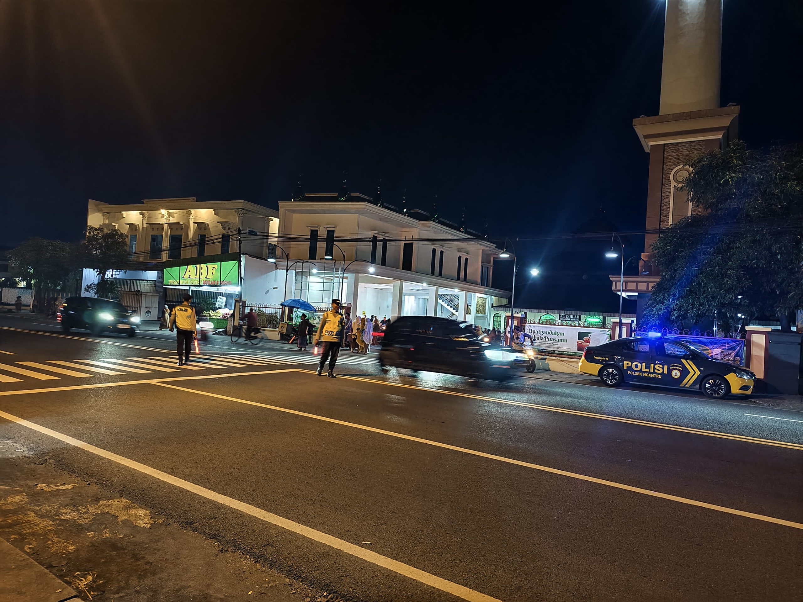 Kegiatan tersebut bertujuan untuk memberikan rasa aman dan nyaman kepada masyarakat yang melaksanakan ibadah, sekaligus memastikan arus lalu lintas di sekitar lokasi masjid tetap lancar dan tertib, Minggu (22/02/2026) malam.